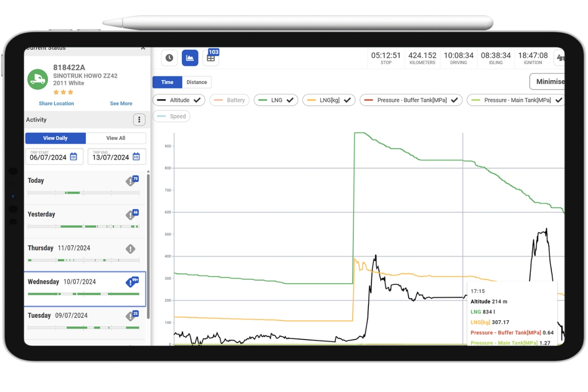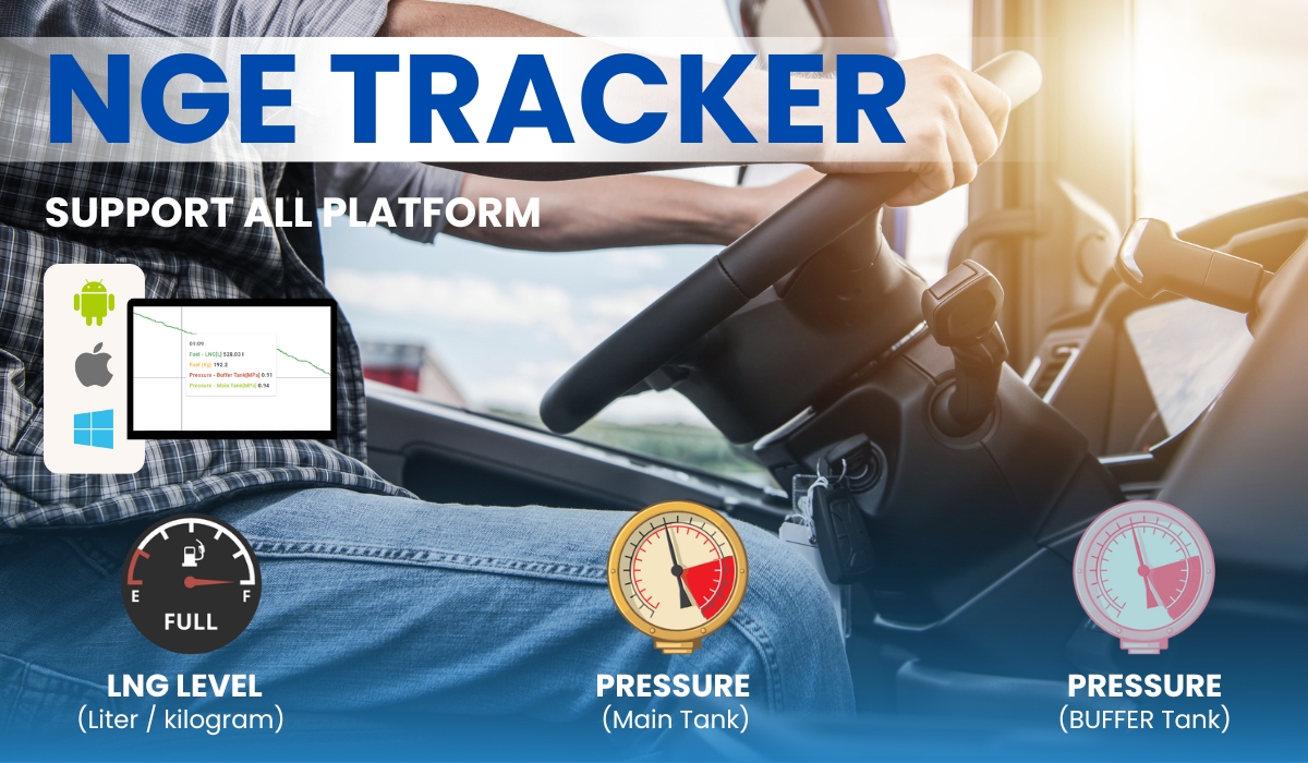 ระบบการจัดการงานขนส่งที่ชาญฉลาด (NGE TRACKER) สามารถตรวจสอบสถานะของแก๊ส LNG ในถังบรรจุ , แรงดัน , อัตราสิ้นเปลือง, รายงานปริมาณการปล่อย CO2 ที่ลดลง รวมถึงสถานีเติม LNG ใกล้เคียง